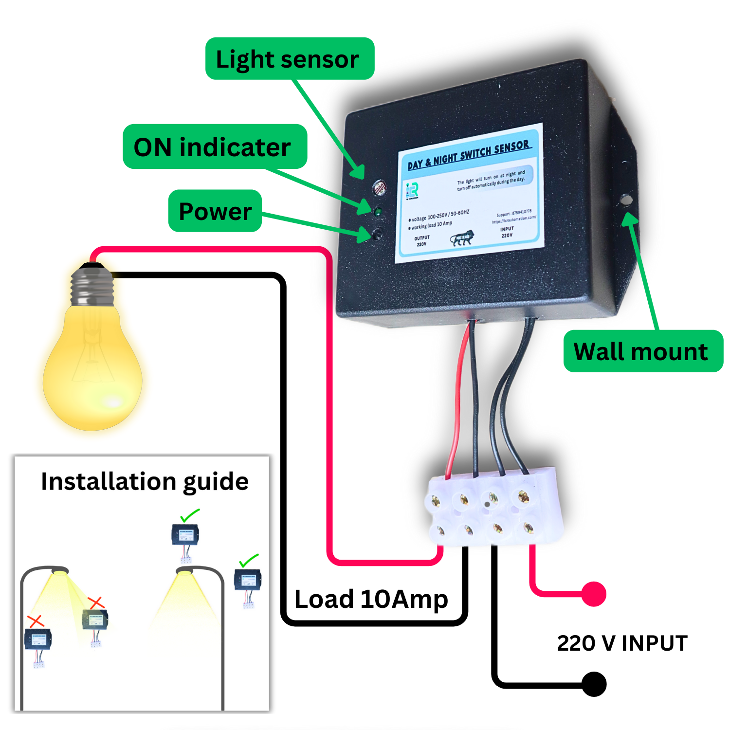 This device turns off the light during the day and turns it on at night. It works through LDR sensor.